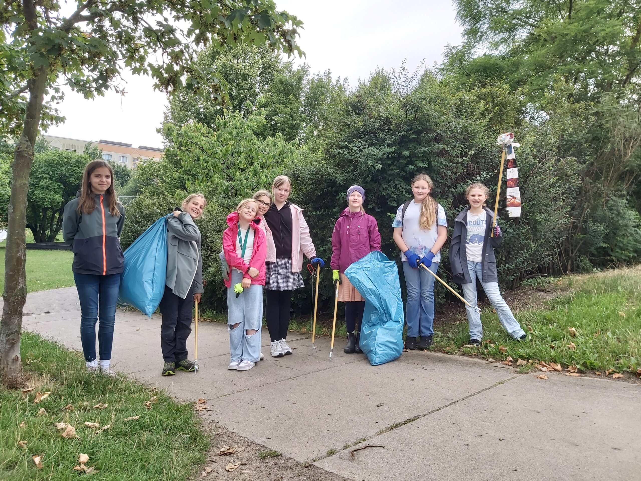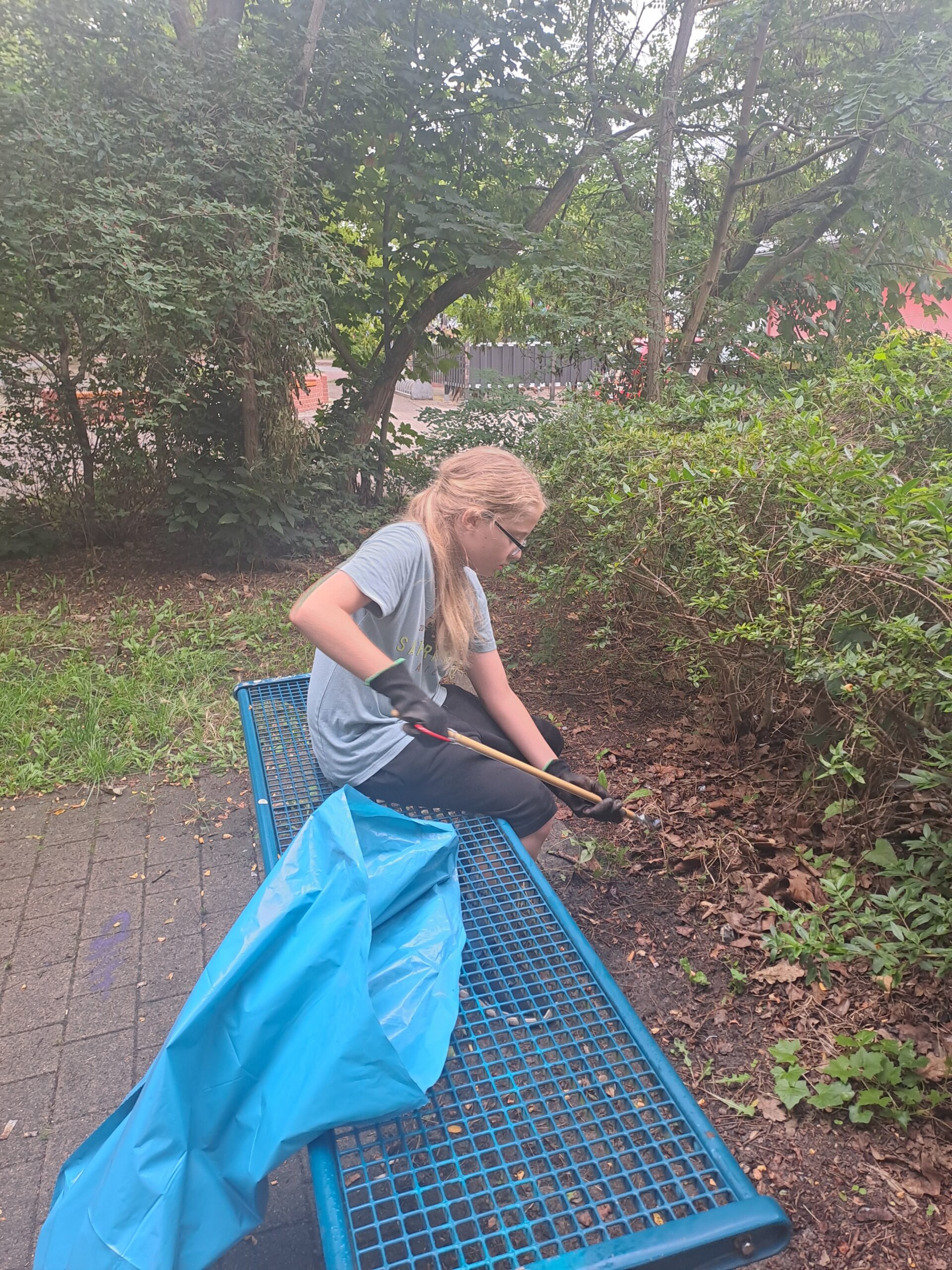 Im Rahmen der Projektwoche war die Klasse 5A gestern Vormittag im Vogelviertel in Neubrandenburg unterwegs, um einen Beitrag zum Umweltschutz zu leisten. Ausgestattet mit Müllsäcken und Greifzangen – bereitgestellt von der Stadt Neubrandenburg – sammelten die Schülerinnen und Schüler eifrig herumliegenden Abfall ein.