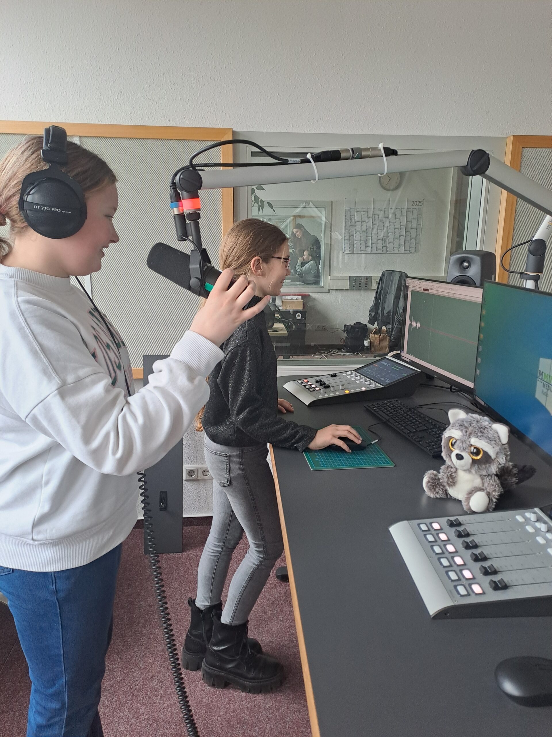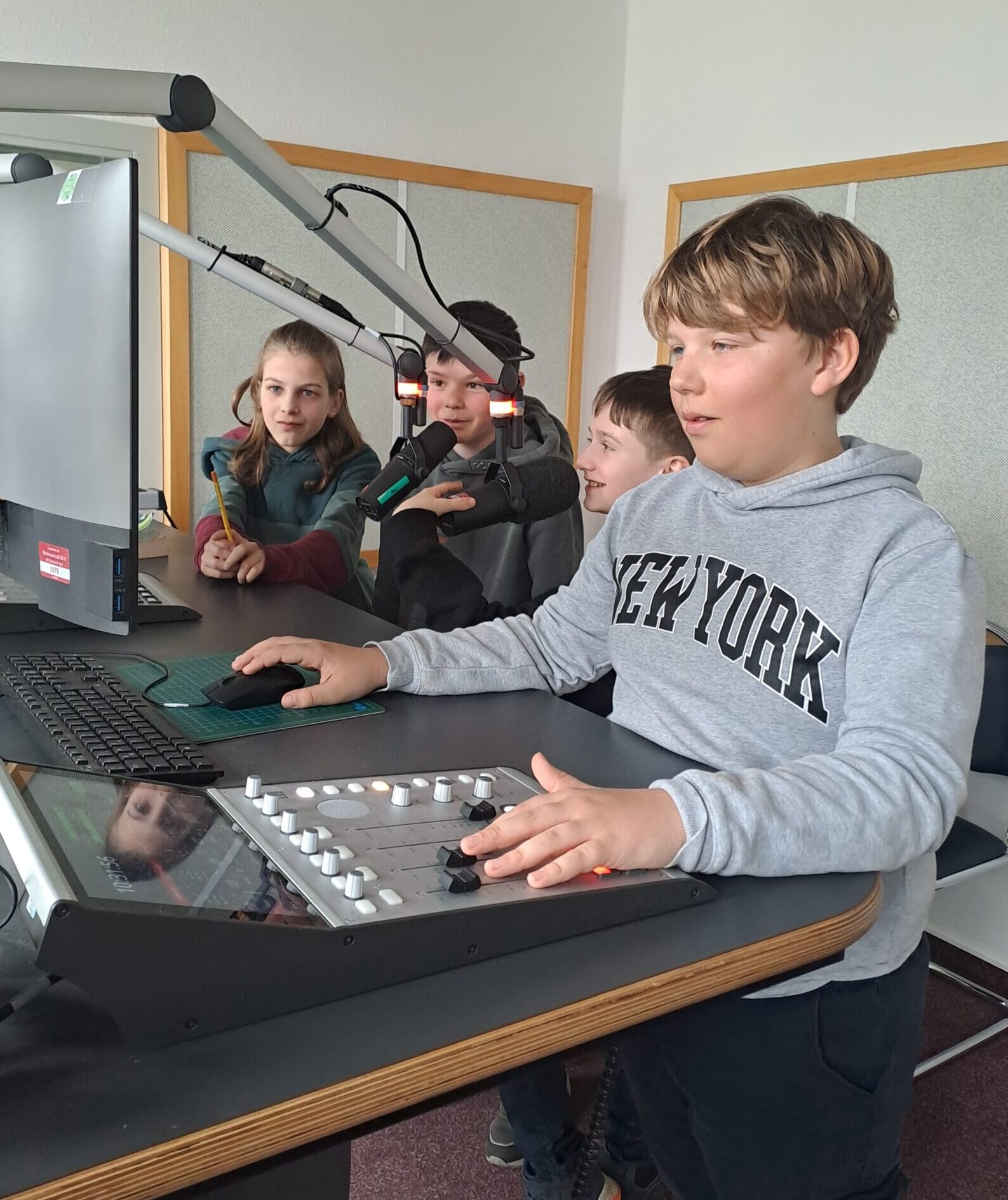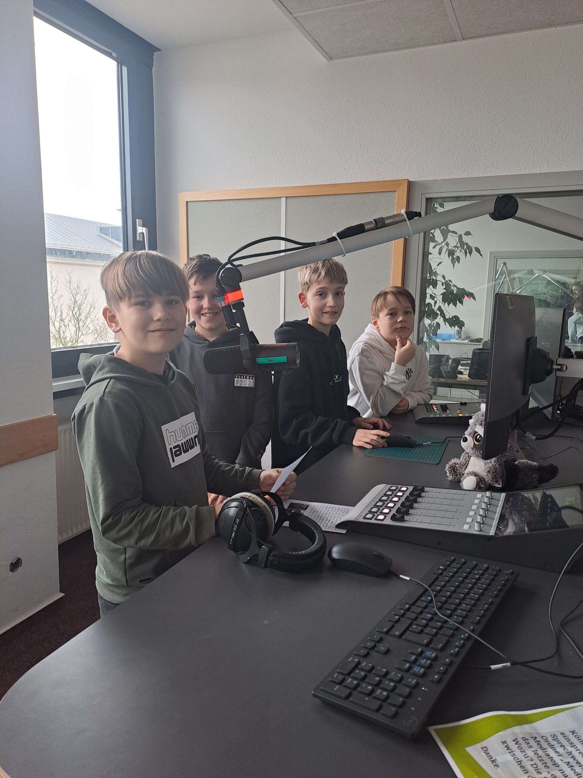 „Nach einer ausführlichen Einführung in die Technik innerhalb der einzelnen Studios durften wir in die Studios, um unsere selbstgeschriebenen Texte einzusprechen. Dabei berichteten wir über unsere Wochenenderlebnisse mit unseren Klassenmaskottchen namens Sawyer und Lucy oder lasen unsere eigenen Geschichten vor. Im Anschluss schnitten wir kleine Versprecher raus und fügte unsere Wunschtitel hinzu. Das hat besonders viel Spaß gemacht“, berichten Ben und Anton.
