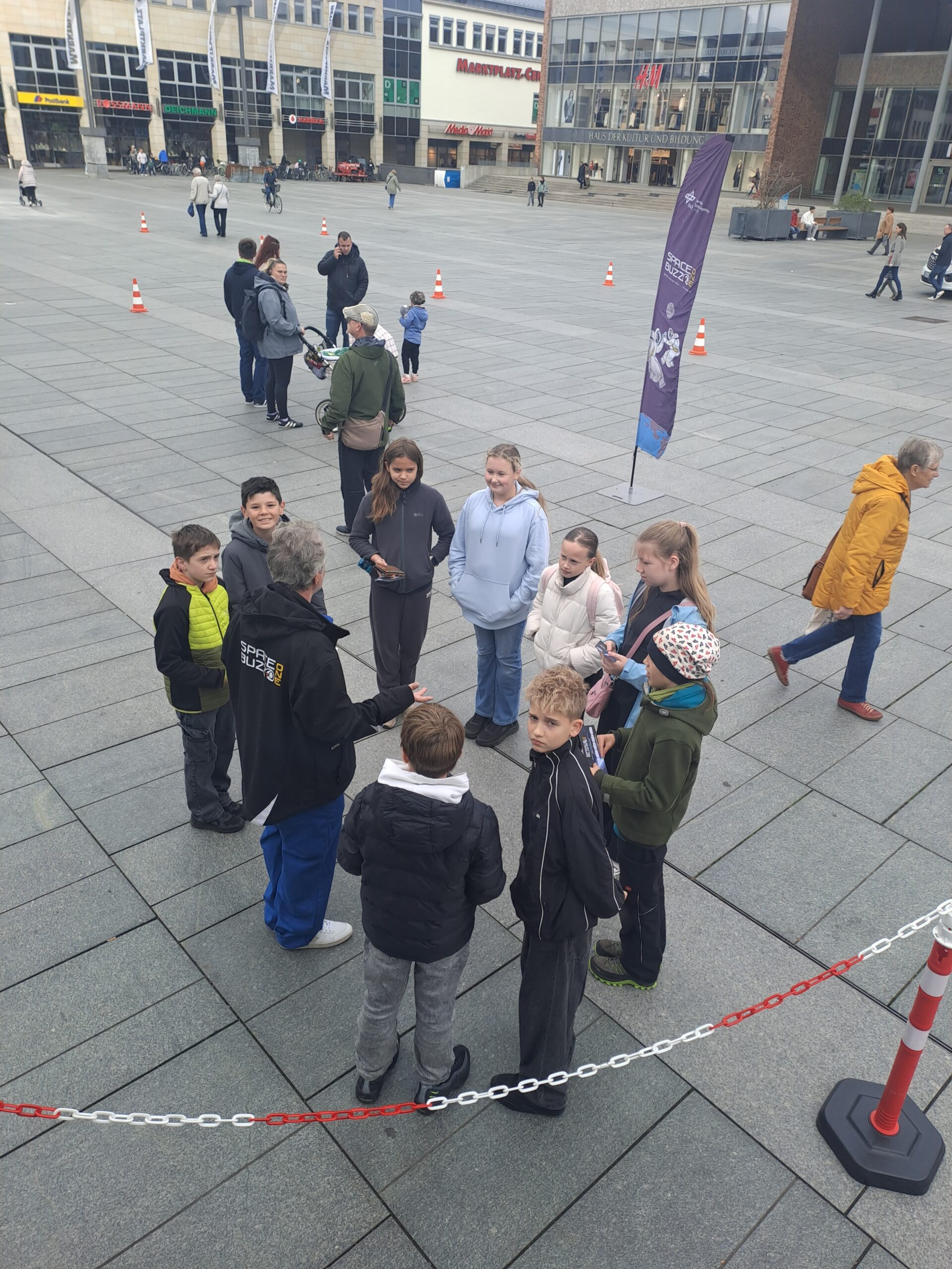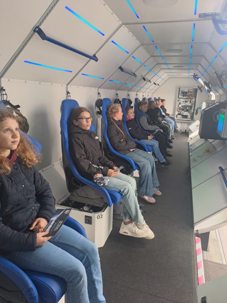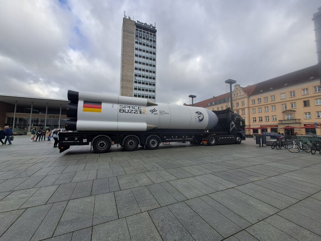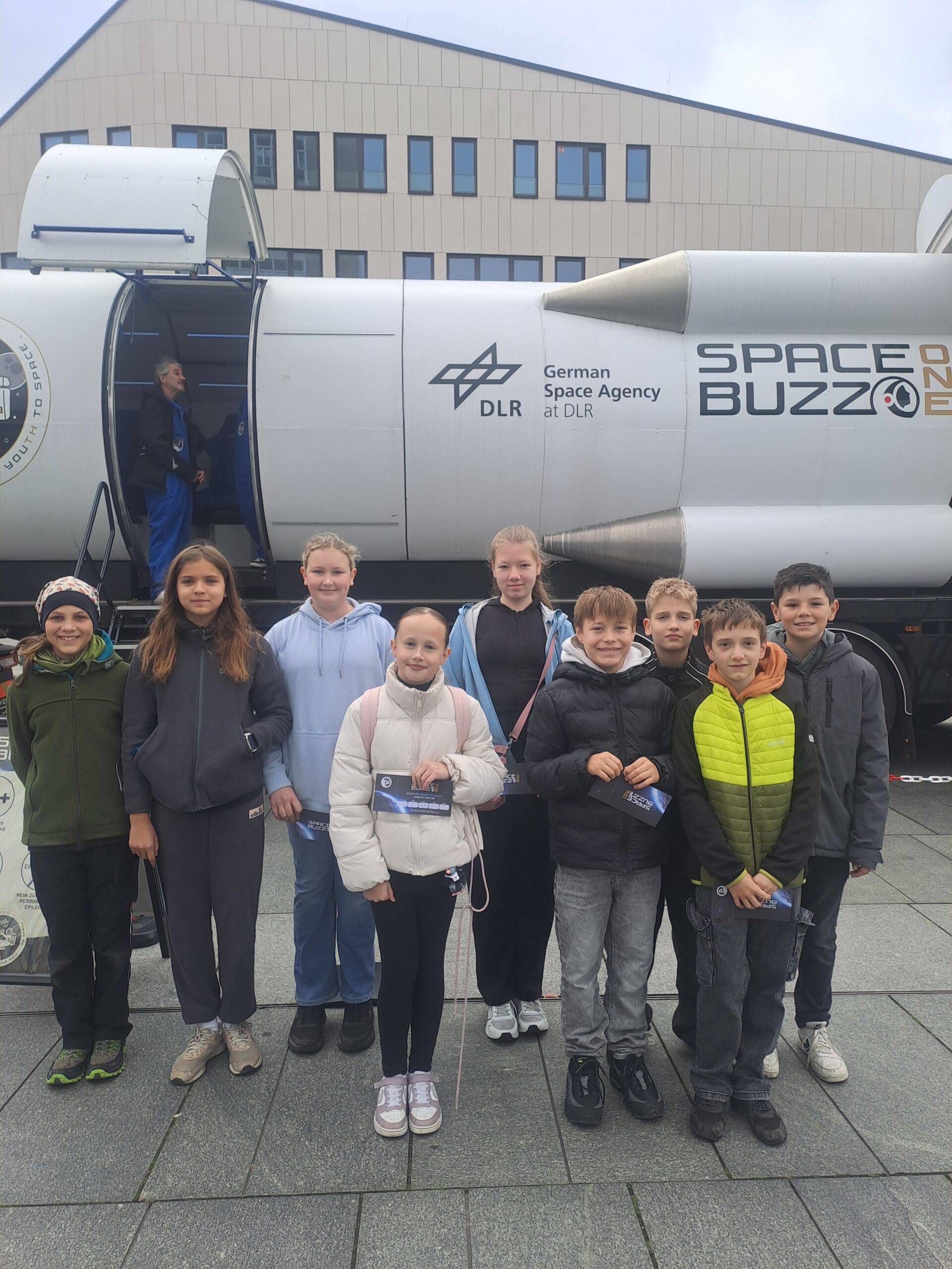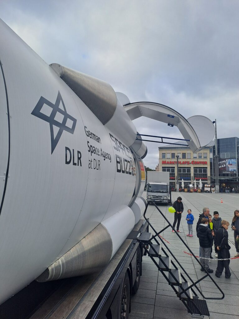 Am Samstag, den 11. Oktober, machte unsere Klasse einen ganz besonderen Ausflug: Wir besuchten auf dem Marktplatz Neubrandenburg den SPACEBUZZ ONE – ein mobiles Weltraumabenteuer der Deutschen Raumfahrtagentur im DLR.