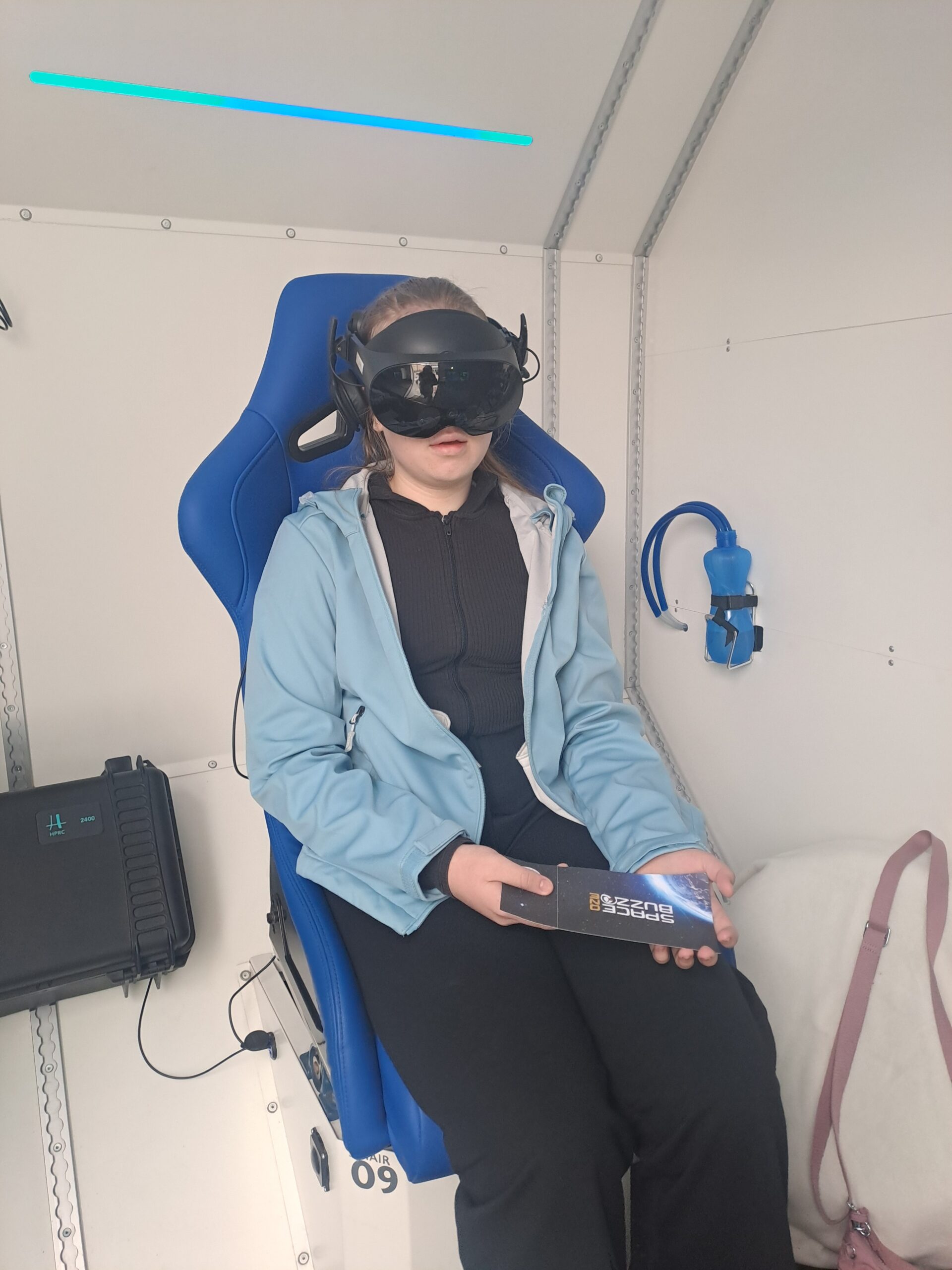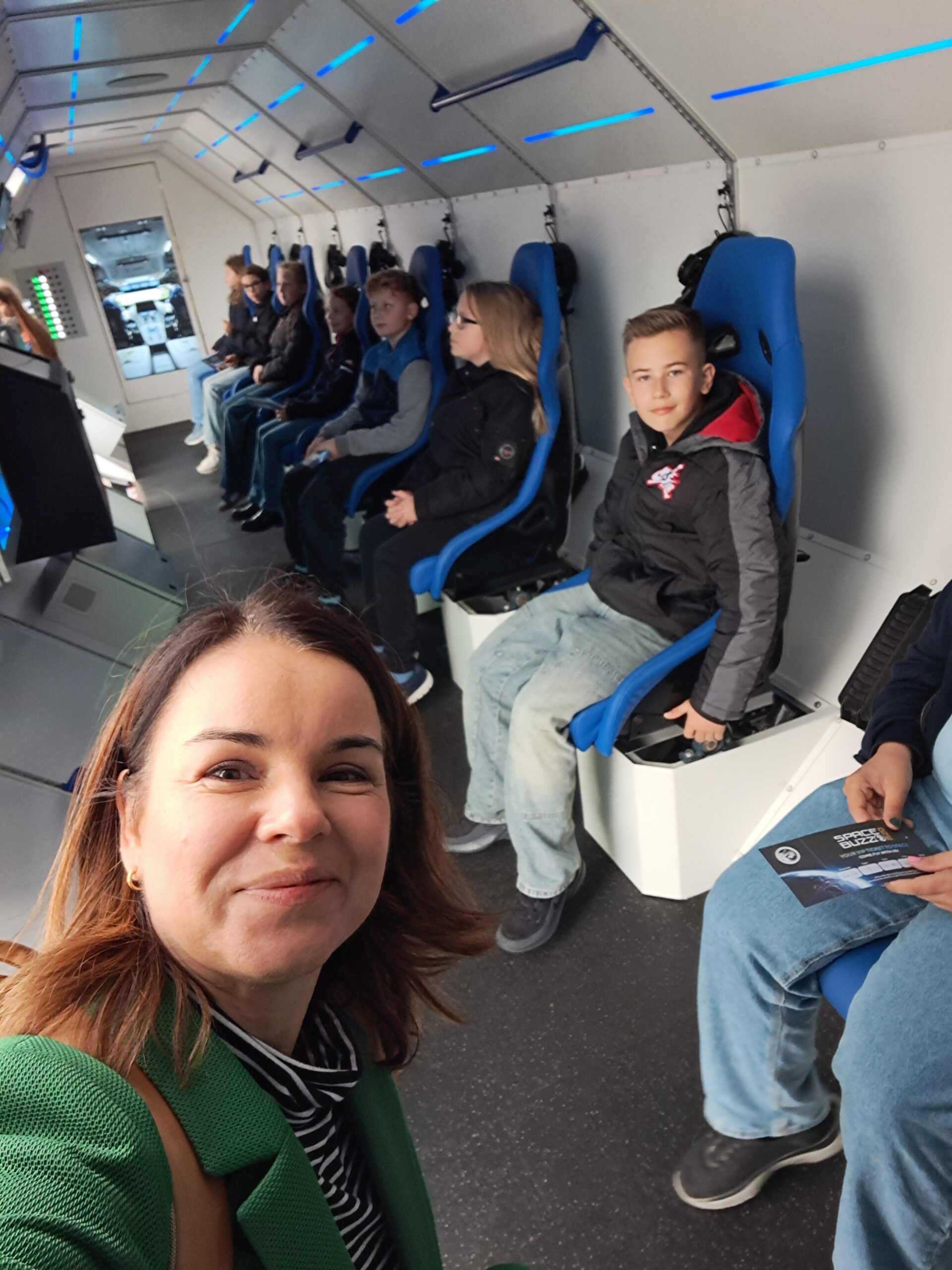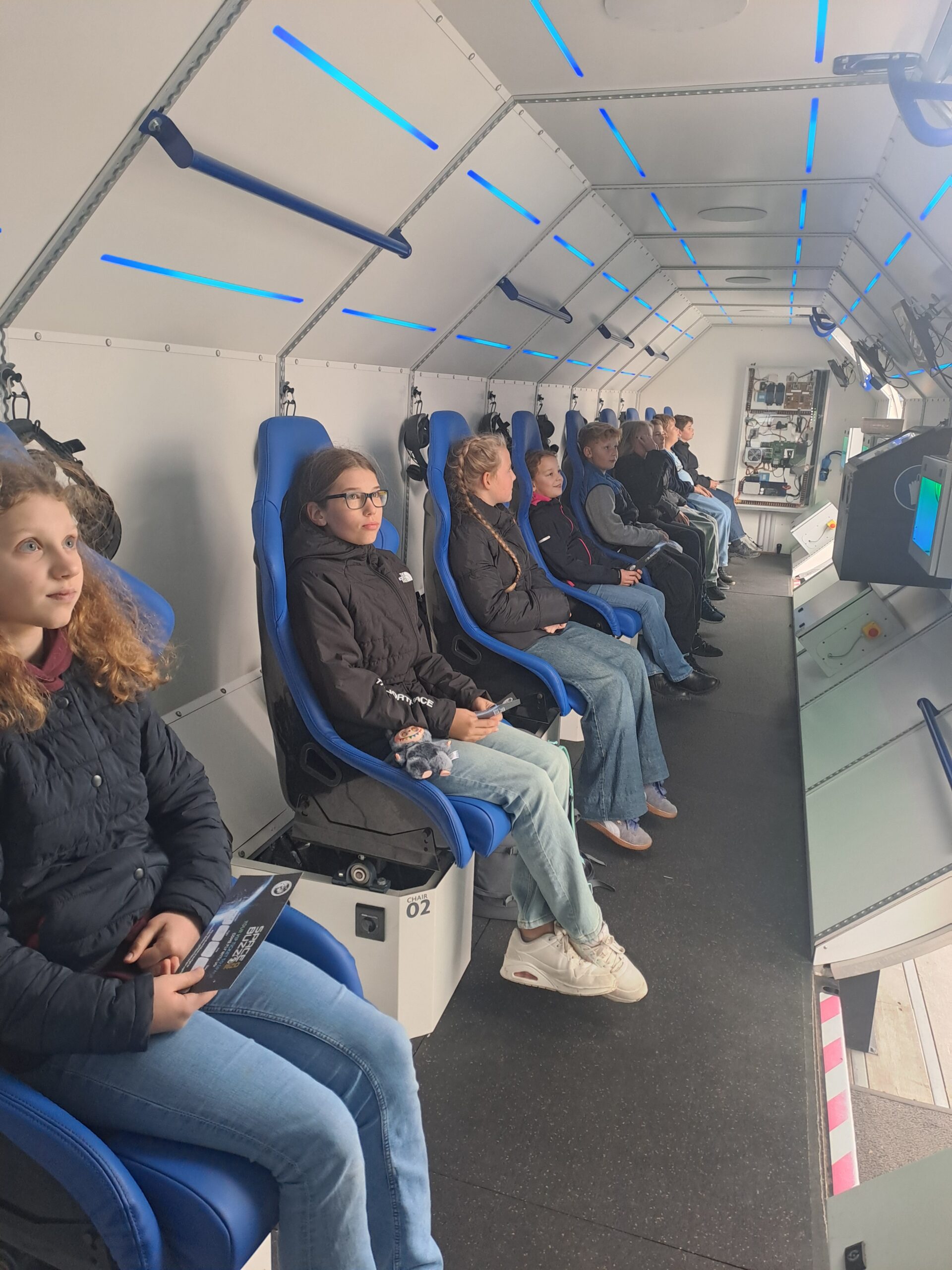 ‚Schon von außen war der SPACEBUZZ beeindruckend: Der große High-Tech-LKW sah aus wie eine liegende Rakete und weckte sofort unsere Neugier. Im Inneren erwartete uns modernste VR-Technologie in einer futuristischen Umgebung, die aussah wie direkt aus einer Raumstation.