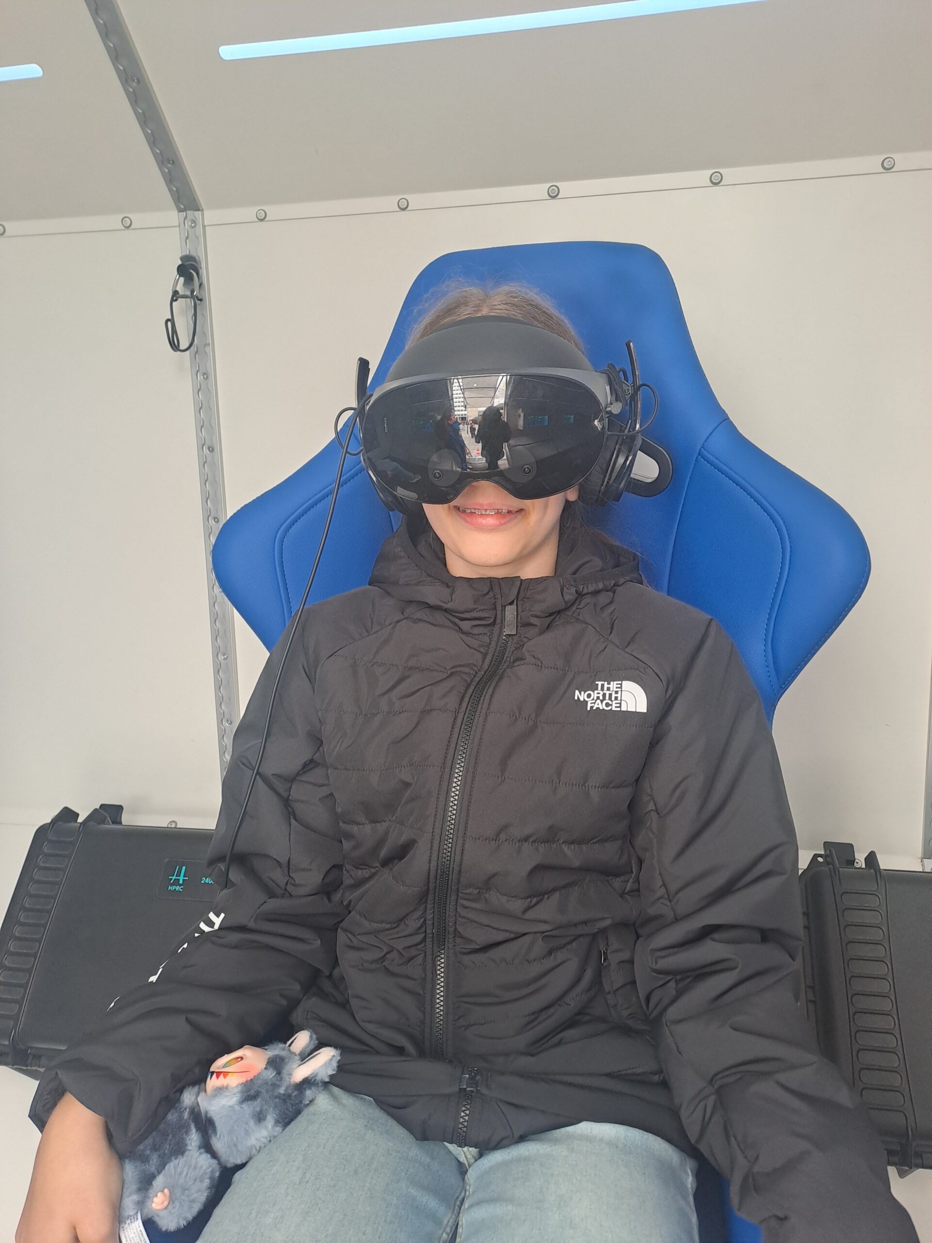 Nachdem wir auf den beweglichen Sitzen Platz genommen und unsere VR-Brillen aufgesetzt hatten, begann unsere Reise. In nur wenigen Sekunden „starteten“ wir ins All! Die Simulation fühlte sich unglaublich echt an – die Erde wurde immer kleiner, und bald schwebten wir schwerelos über unserem Heimatplaneten.