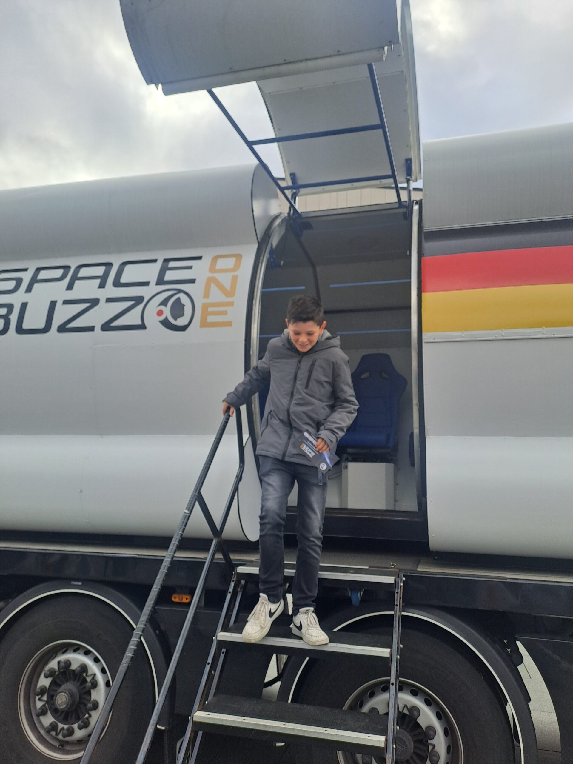 ‚Schon von außen war der SPACEBUZZ beeindruckend: Der große High-Tech-LKW sah aus wie eine liegende Rakete und weckte sofort unsere Neugier. Im Inneren erwartete uns modernste VR-Technologie in einer futuristischen Umgebung, die aussah wie direkt aus einer Raumstation.