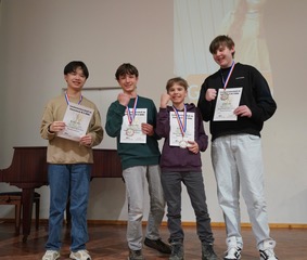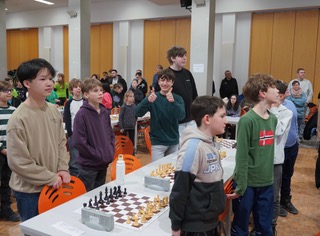 Die zweite Mannschaft WK III hatte nach dem Ausfall von Marek nur noch 3 Spieler, d.h. in jeder Runde war eine Partie schon verloren. Unter diesen Umständen ist der 7. Platz eine starke Leistung. Unsere jüngste Mannschaft hat mit dem Manko zu kämpfen, dass sie – obwohl getrennt gewertet – in einer Turniergruppe mit der WK III antreten musste – und das obwohl die Jungs ohnehin schon in ihrer WK die jüngsten waren. Nach starkem Beginn ließ die Konzentration nach, so dass sie auf dem 5. Platz landete, nicht auf dem geplanten 2. Platz, der die Teilnahme an den Deutschen Meisterschaften bedeutet hätte.